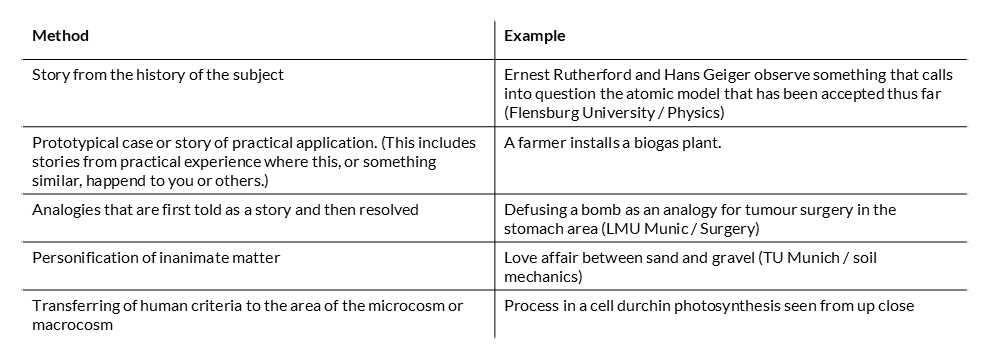 In the many years of my own practice of storytelling and as the result of many seminars on teaching and learning at university, five approaches have crystallised that can encapsulate almost any topic in a story that is easy to tell.